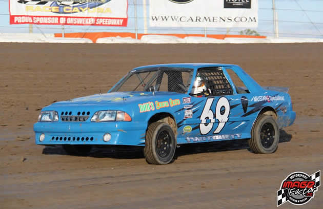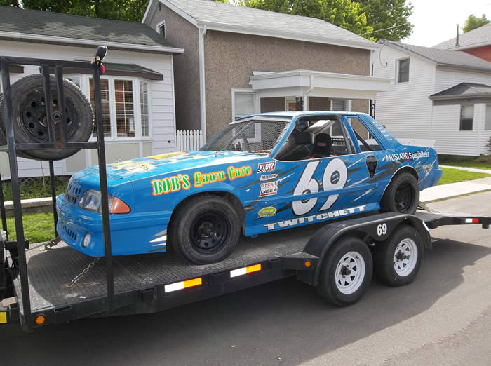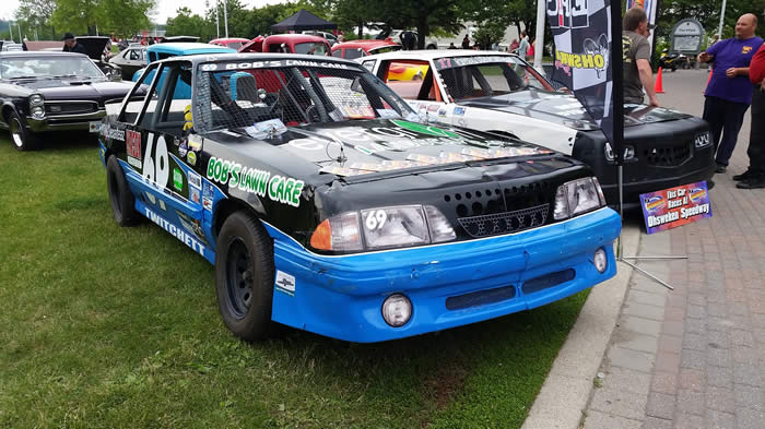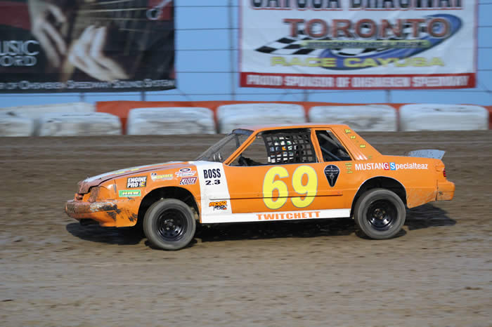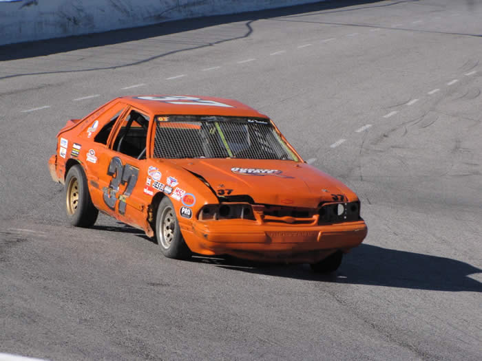 In 2010 made the jump from Figure 8 and Rollover, to racing in the Oshweken Speedway Bomber Series. I started with upgrading the Ford Escort that I used for Figure 8 the year before. After 4 DNF's then a blown engine in late June, The Escort was finally sent to the crusher.My next victim was a 2000 Hyundai Accent. It was much quicker then the previous car. This was the turning point of the season for me. By late summer, I had made up my mind about making the jump to the mini stock class. In September I purchased a former Abel Castelein mustang from Rob Hoskins. With some minor changes, I debuited the mini stock at "Night before the Nationals". My Nephew, and long time crew member, Logan Martin, ran the Bomber that night. I also ran the mini at Flamboro Speedway's Frost Fest. This was my first time racing on pavement. |